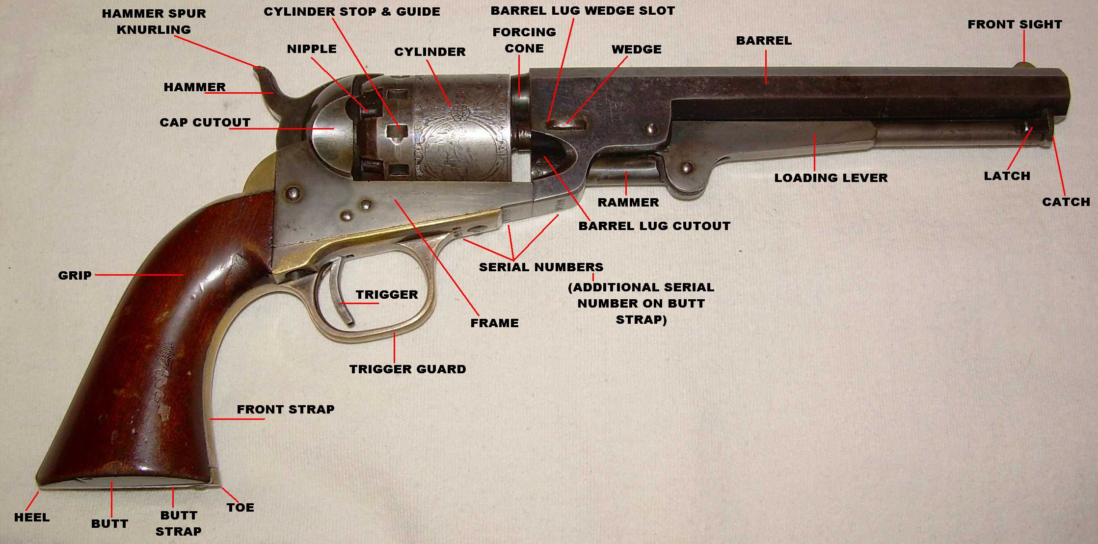 Here is a guide to the parts of a Manhattan 4th Model Navy. Double-click on the thumbnail below for a full size