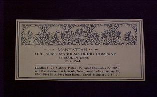 Manhattan made many different models. The most common are the .36 caliber Navy percussion revolver and