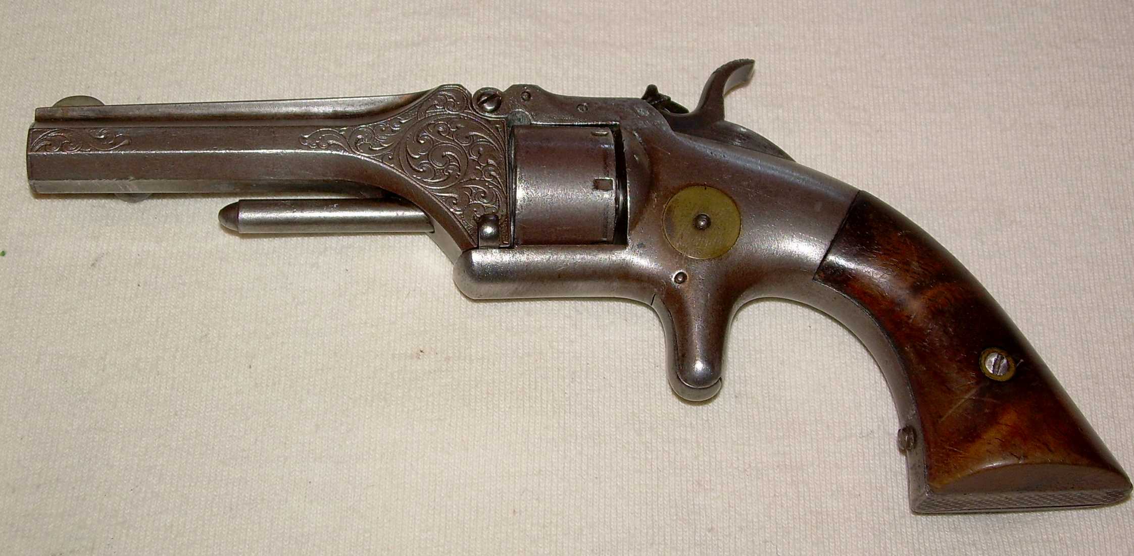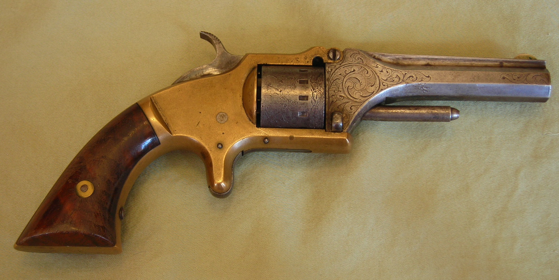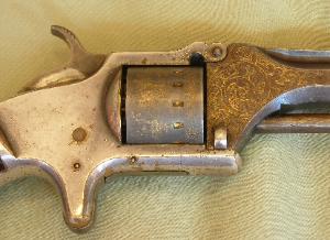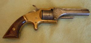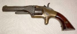 | This Second model Manhattan .22 Serial Number #2 Has a polished brass frame w/blued cylinder and barrel |